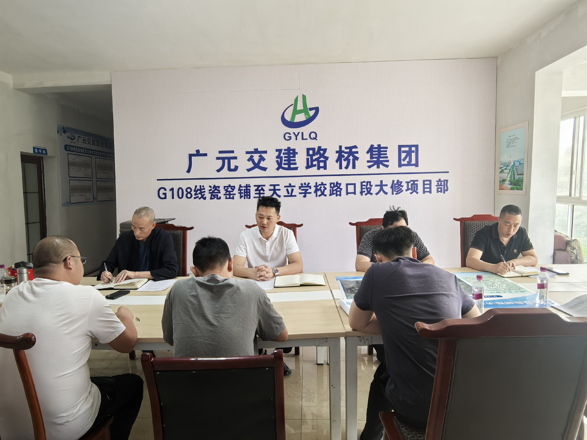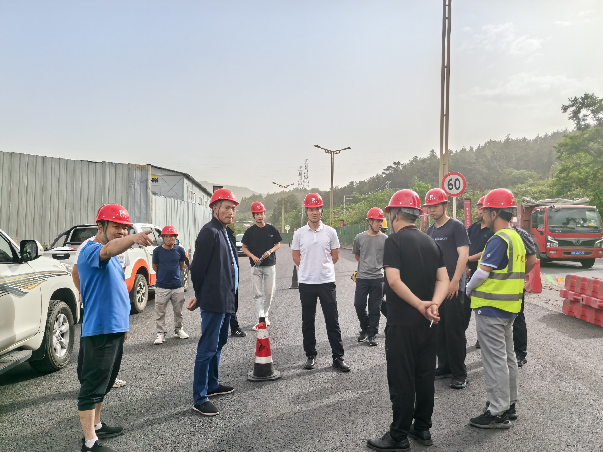 5月9日,總經(jīng)理黎強(qiáng)在G108項(xiàng)目現(xiàn)場主持召開揚(yáng)塵治理專題會(huì)。